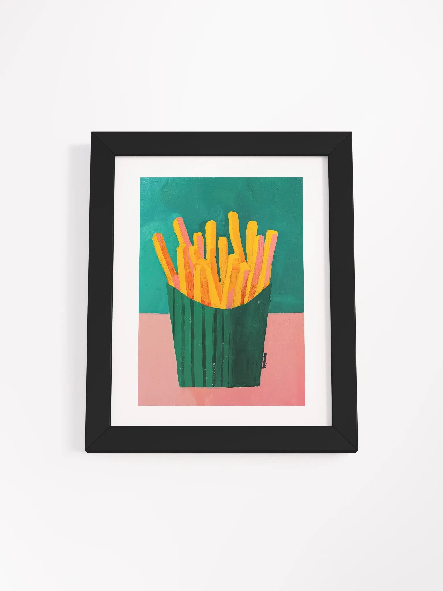 Display your love for crispy fries with this museum-quality matte poster, framed in eco-conscious Ayous wood. The vibrant water-based inkjet print is a colorful addition to any space. Hang it with ease using the included hardware.