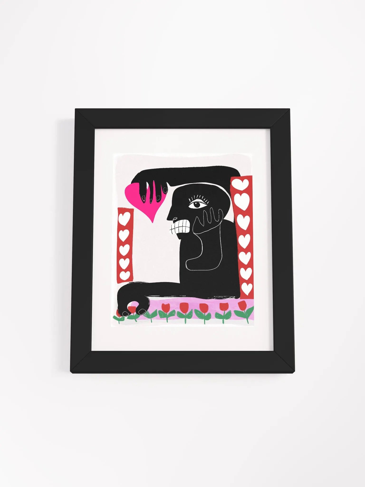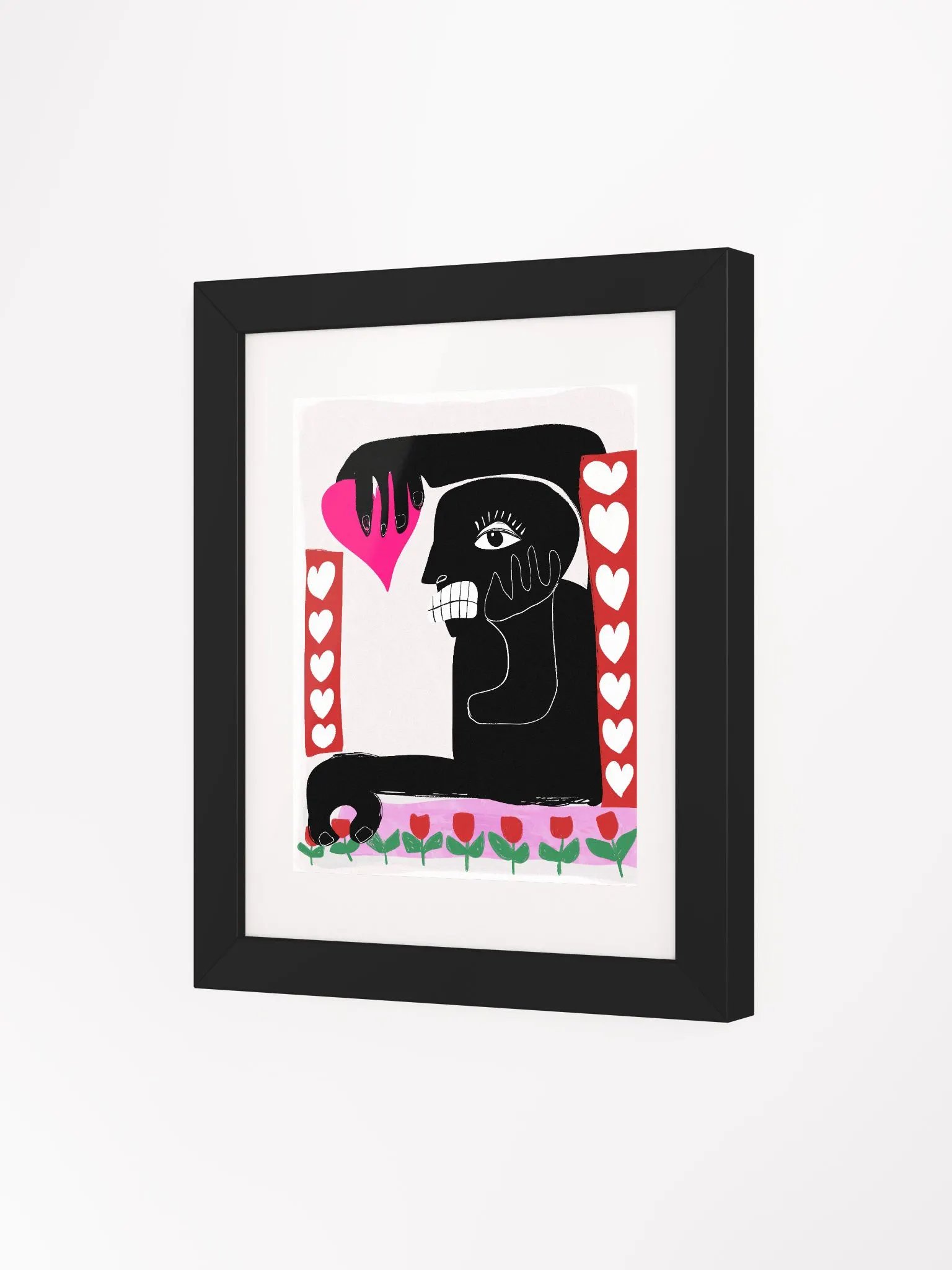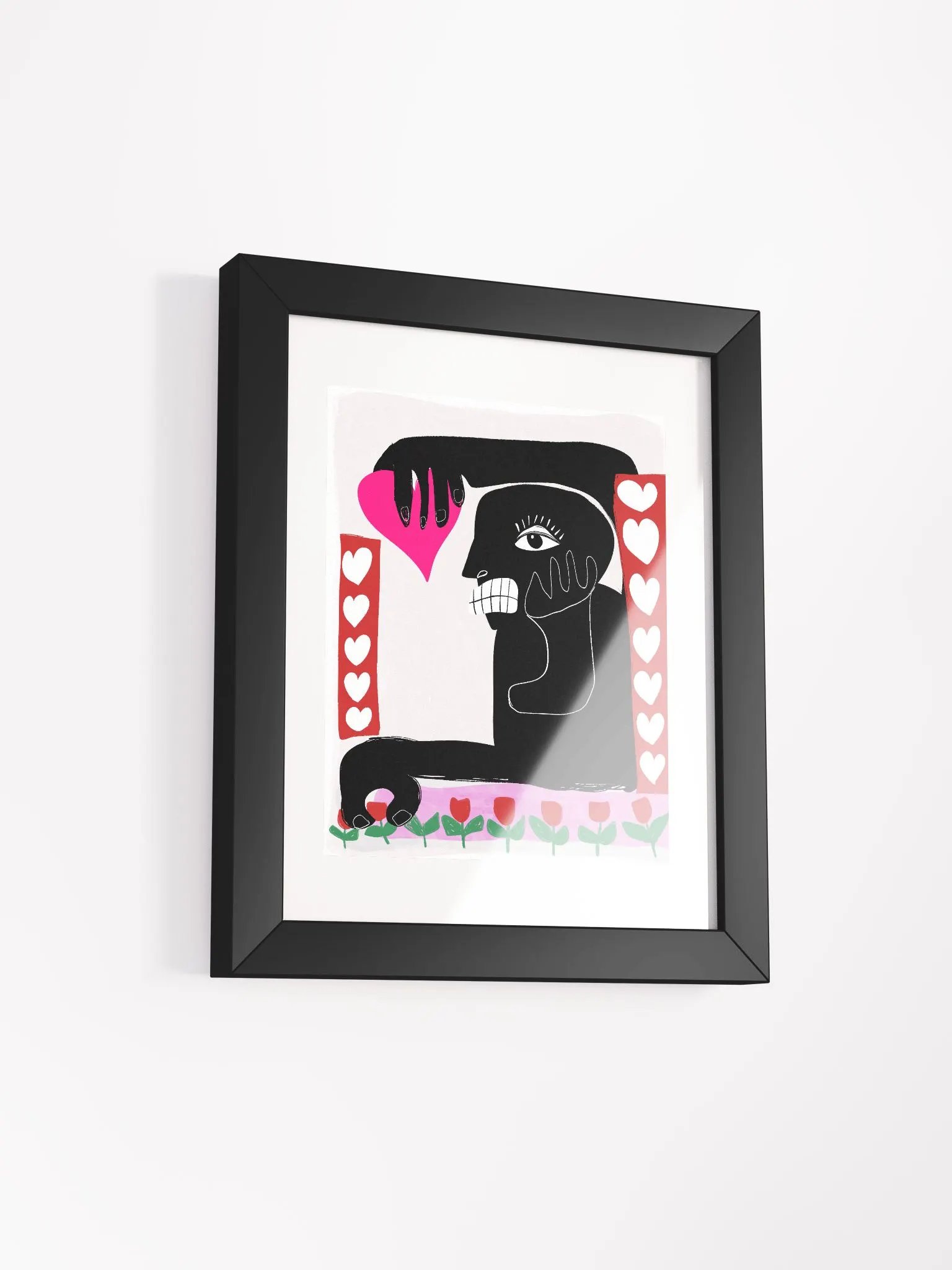 Museum-quality matte poster framed in eco-conscious Ayous wood, featuring a vibrant water-based inkjet print on 10 mil paper with a stylized and abstract design. Includes hanging hardware. Not available for shipping to Australia.