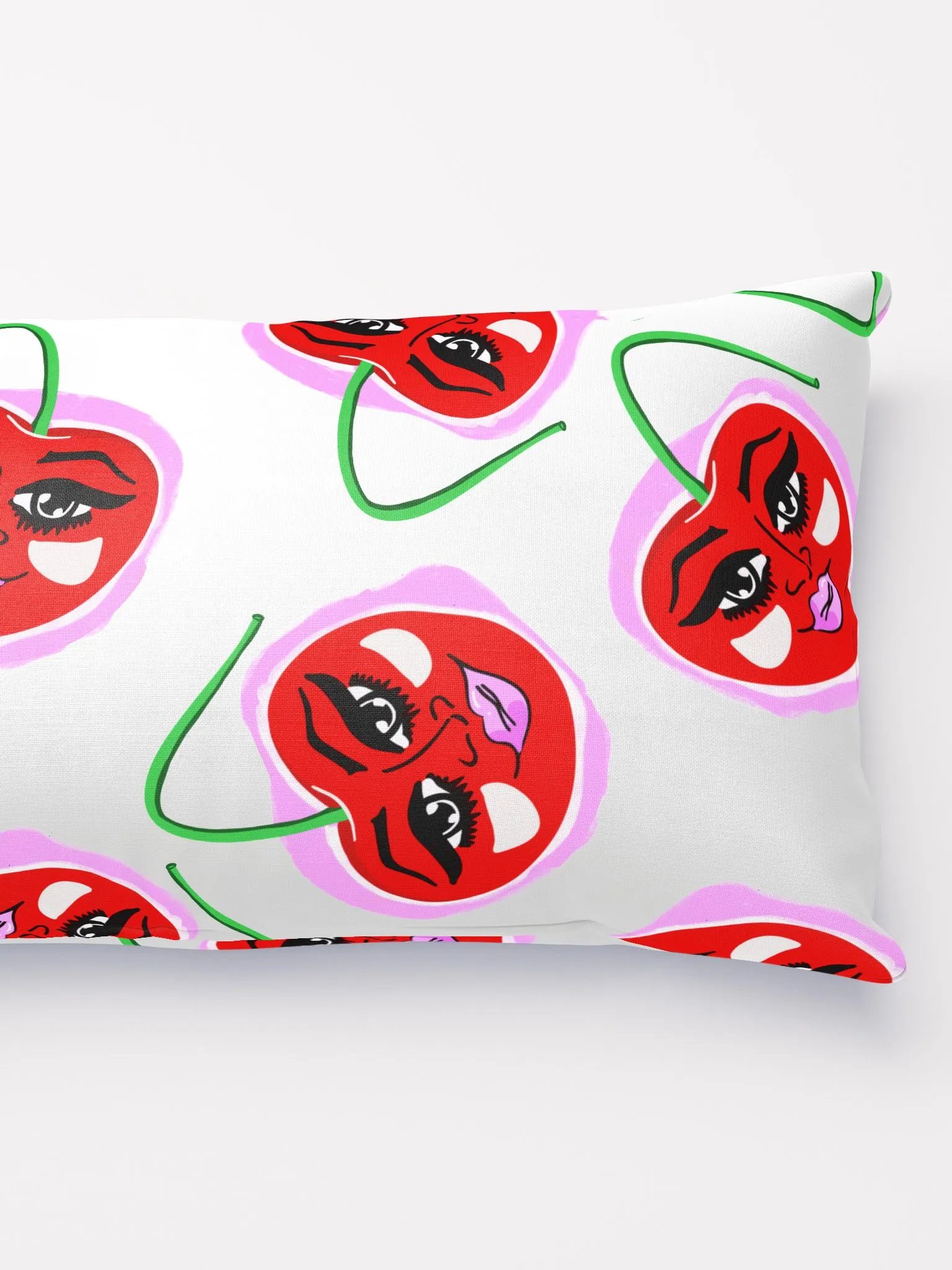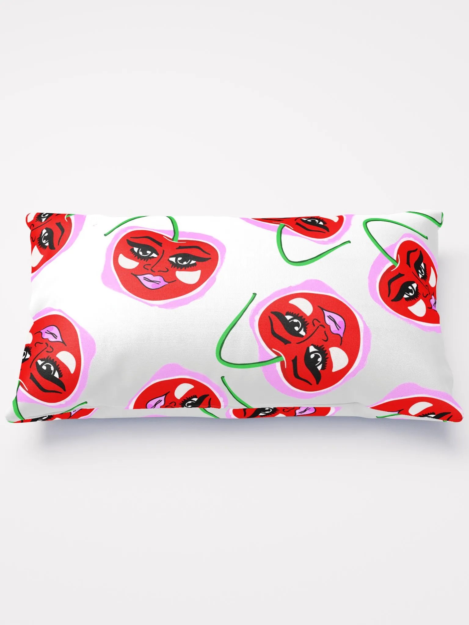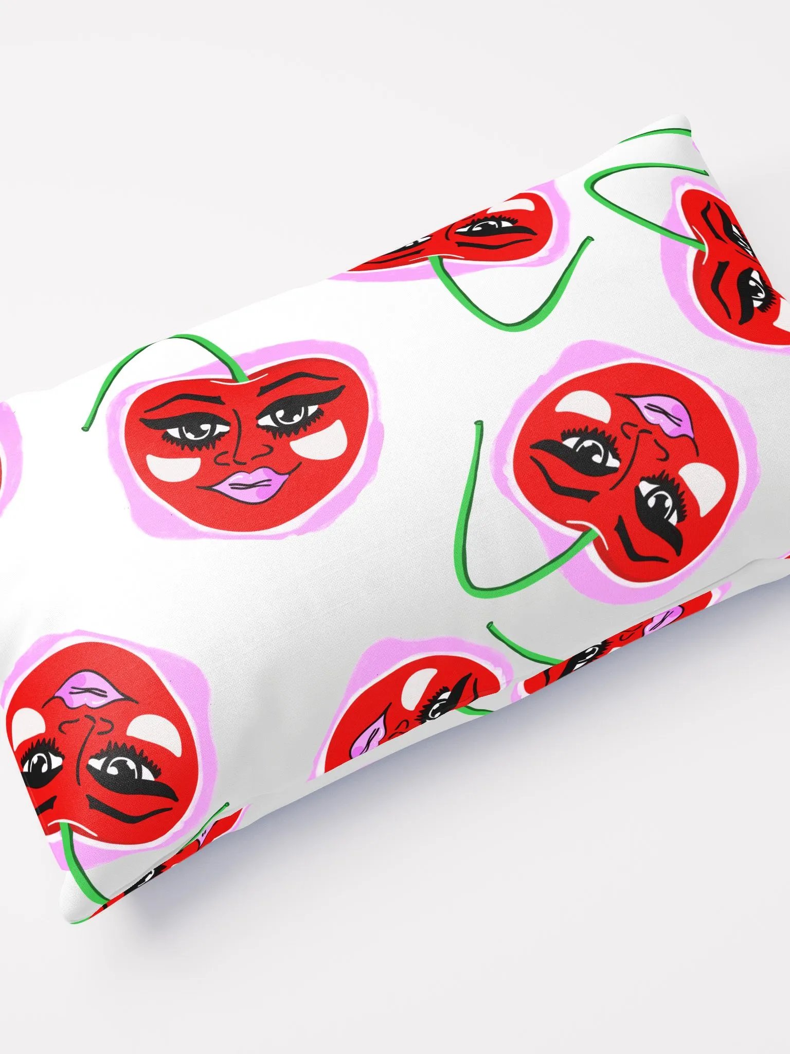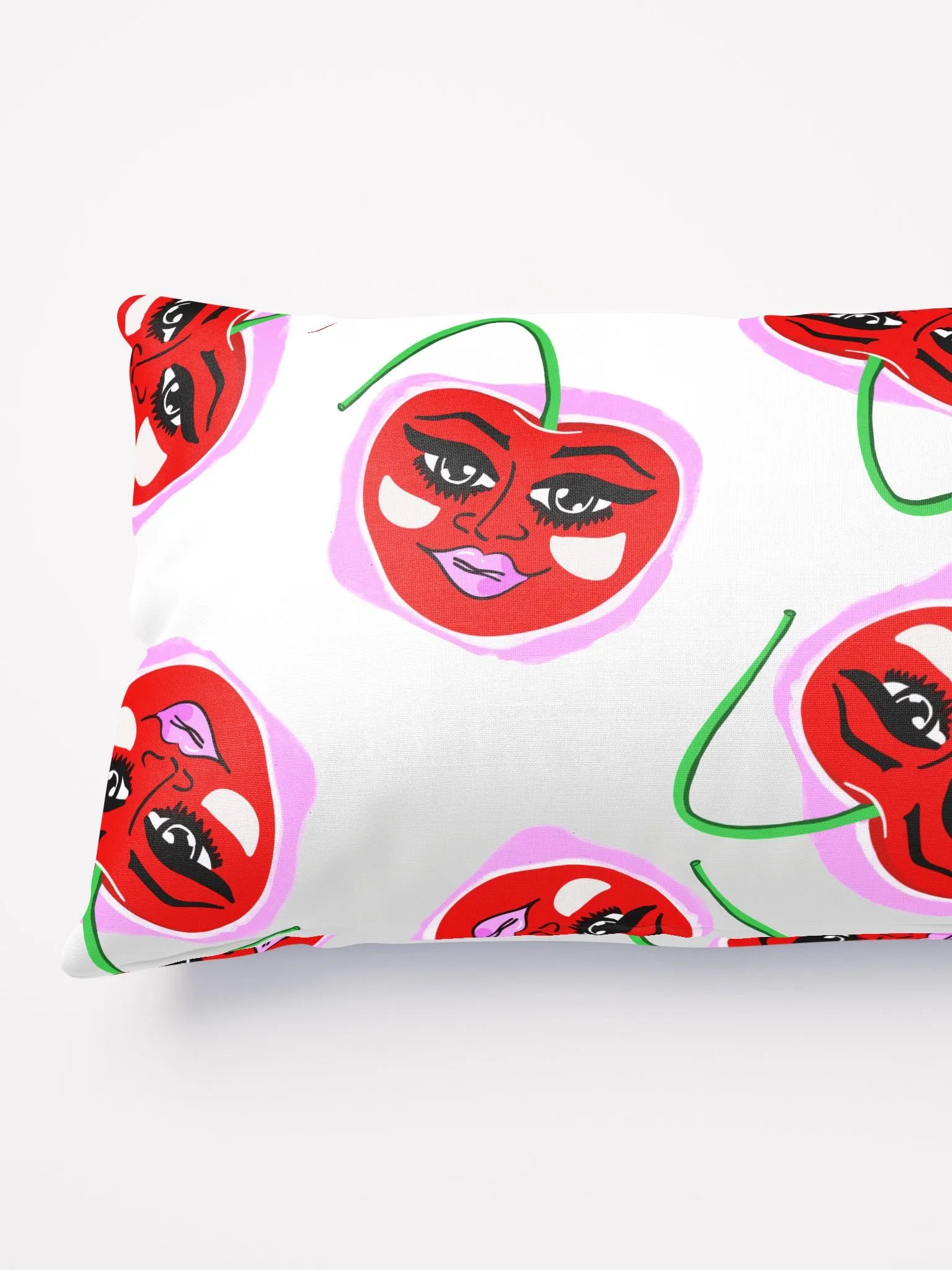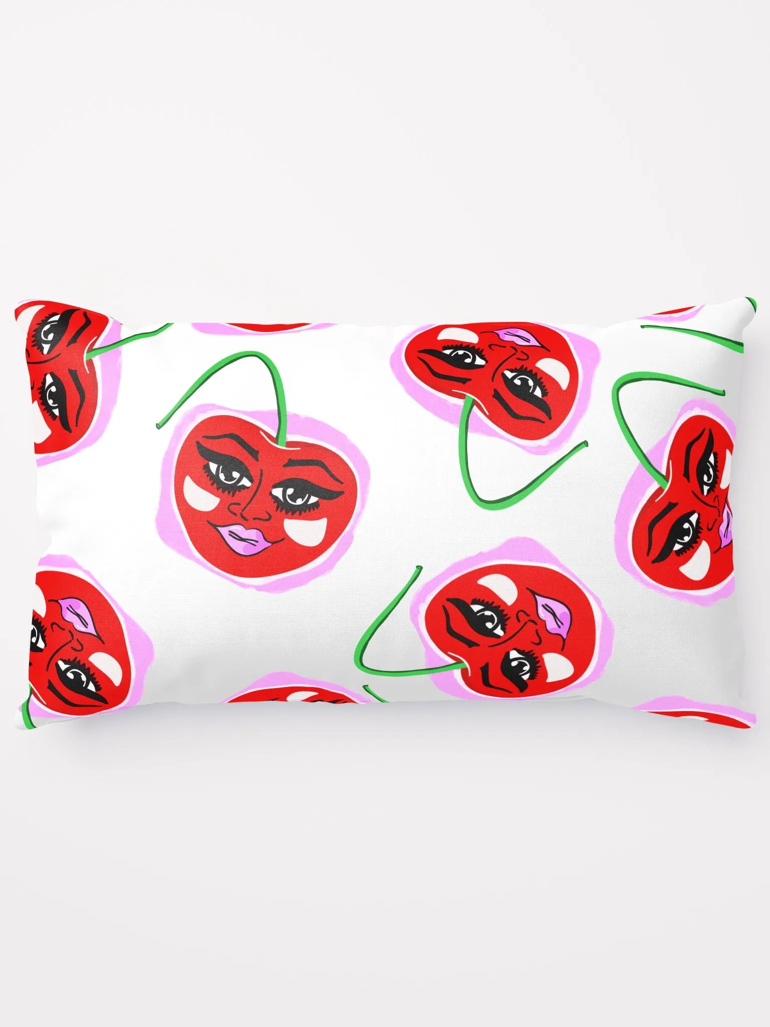 Stylish kitschy pop art pillow featuring Ms. Cherry.