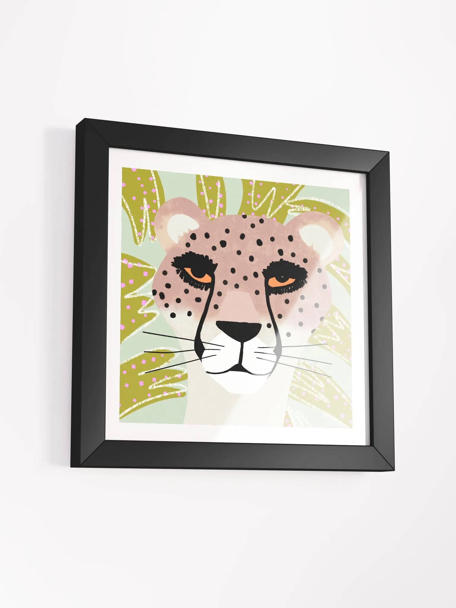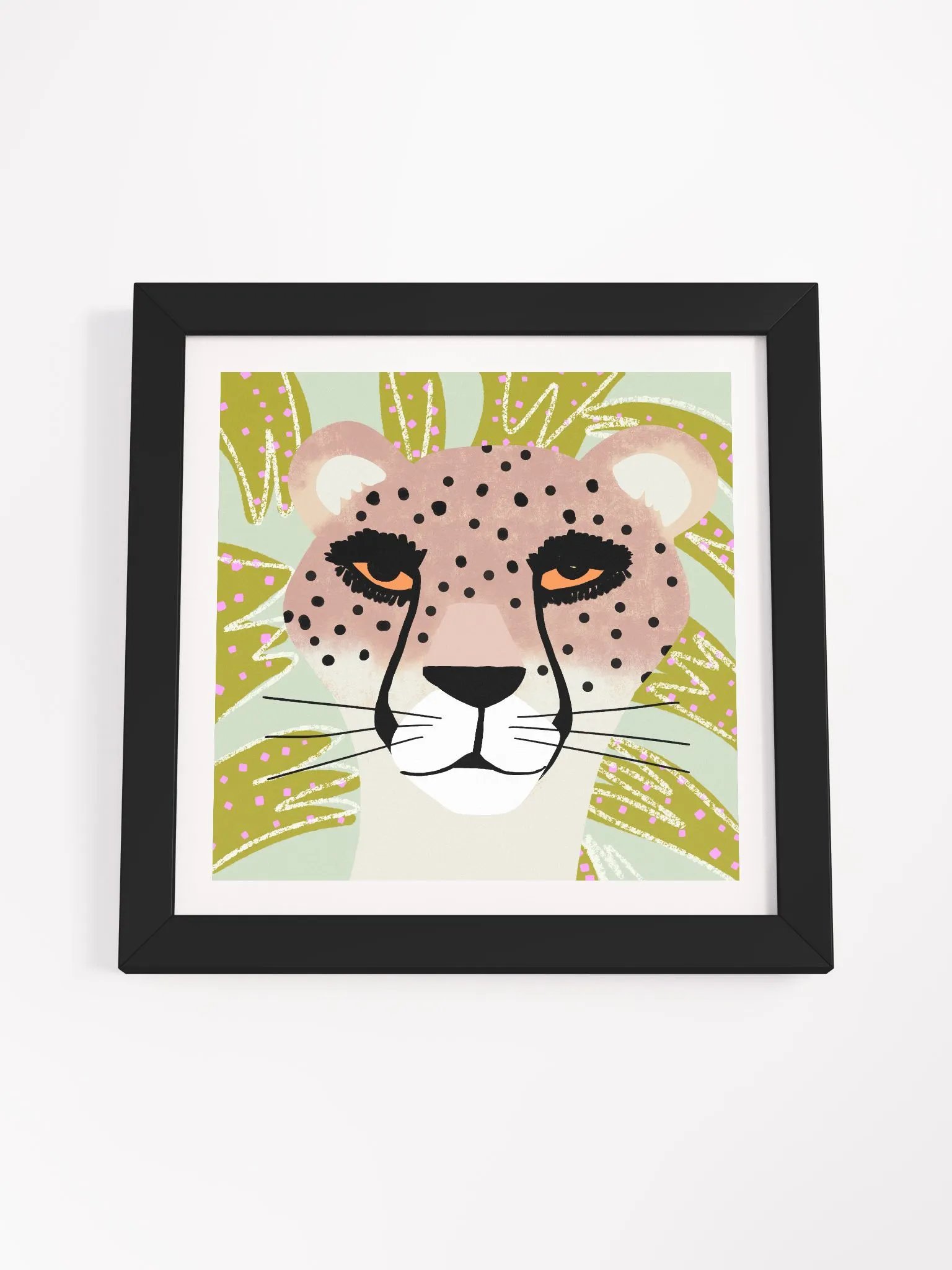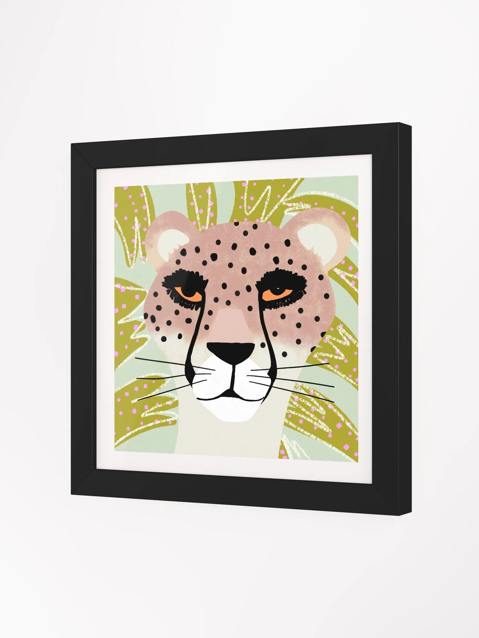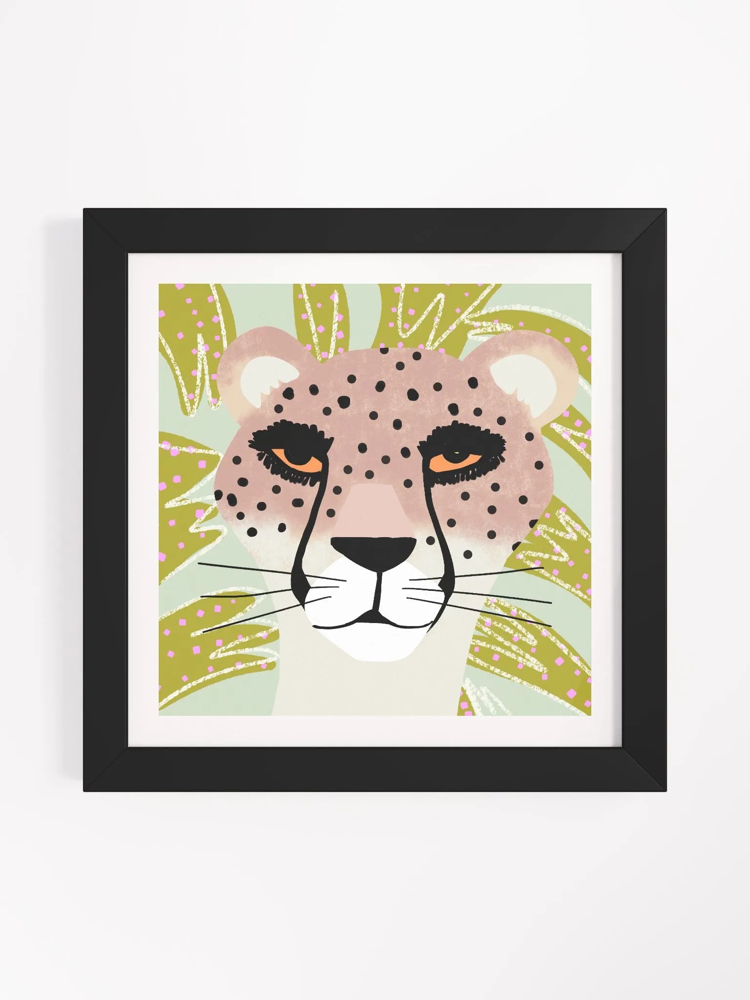 Vibrant cheetah face poster printed on museum-quality matte paper, framed in a modern, eco-conscious style. Not available for shipping to Australia.