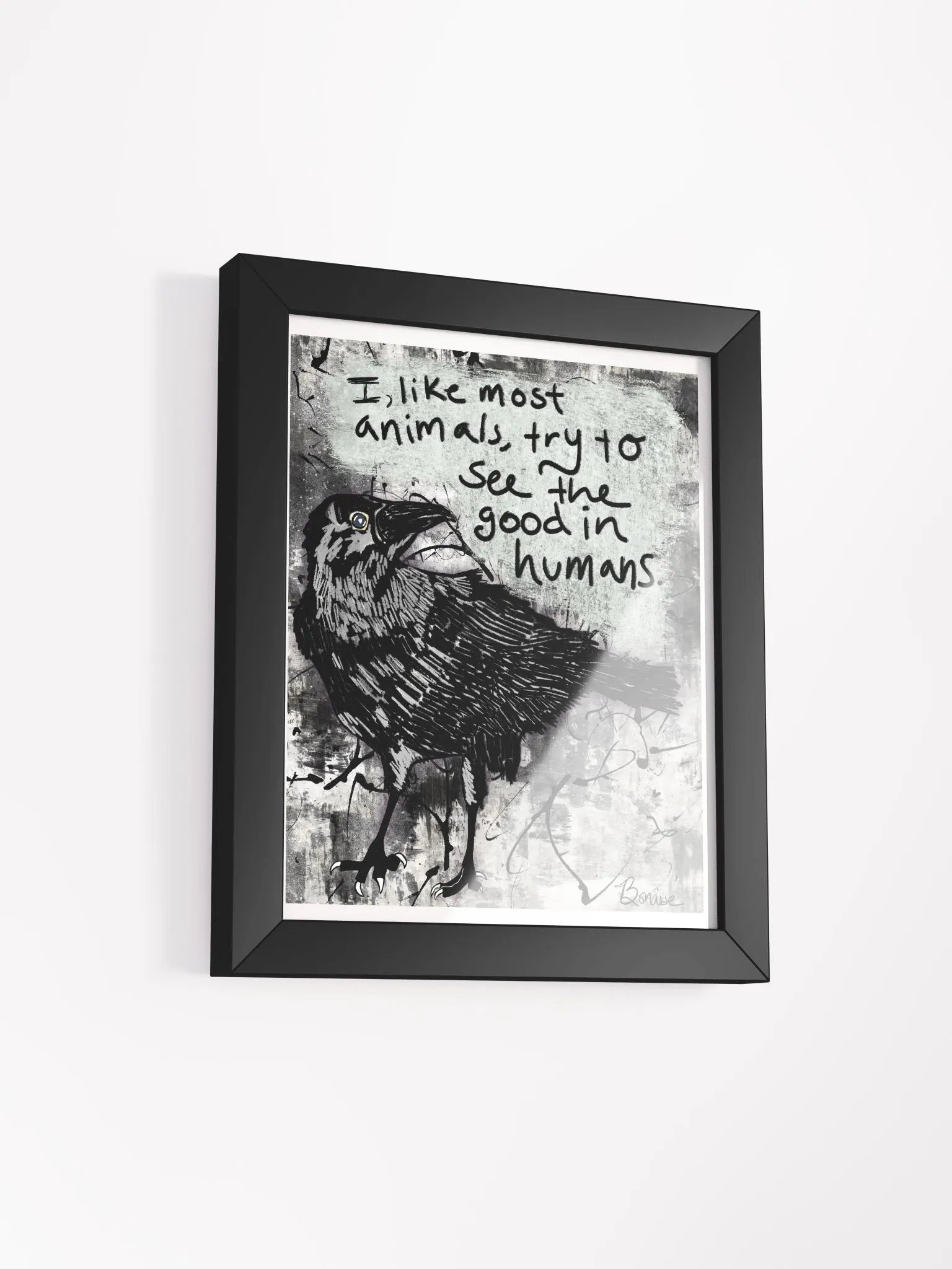 Embrace the enigmatic beauty of the raven with this framed matte poster. Printed on museum-quality matte paper with vibrant, water-based inkjet print. The eco-conscious Ayous wood frame adds a touch of elegance. A unique art piece by Bonaise, perfect for your walls.