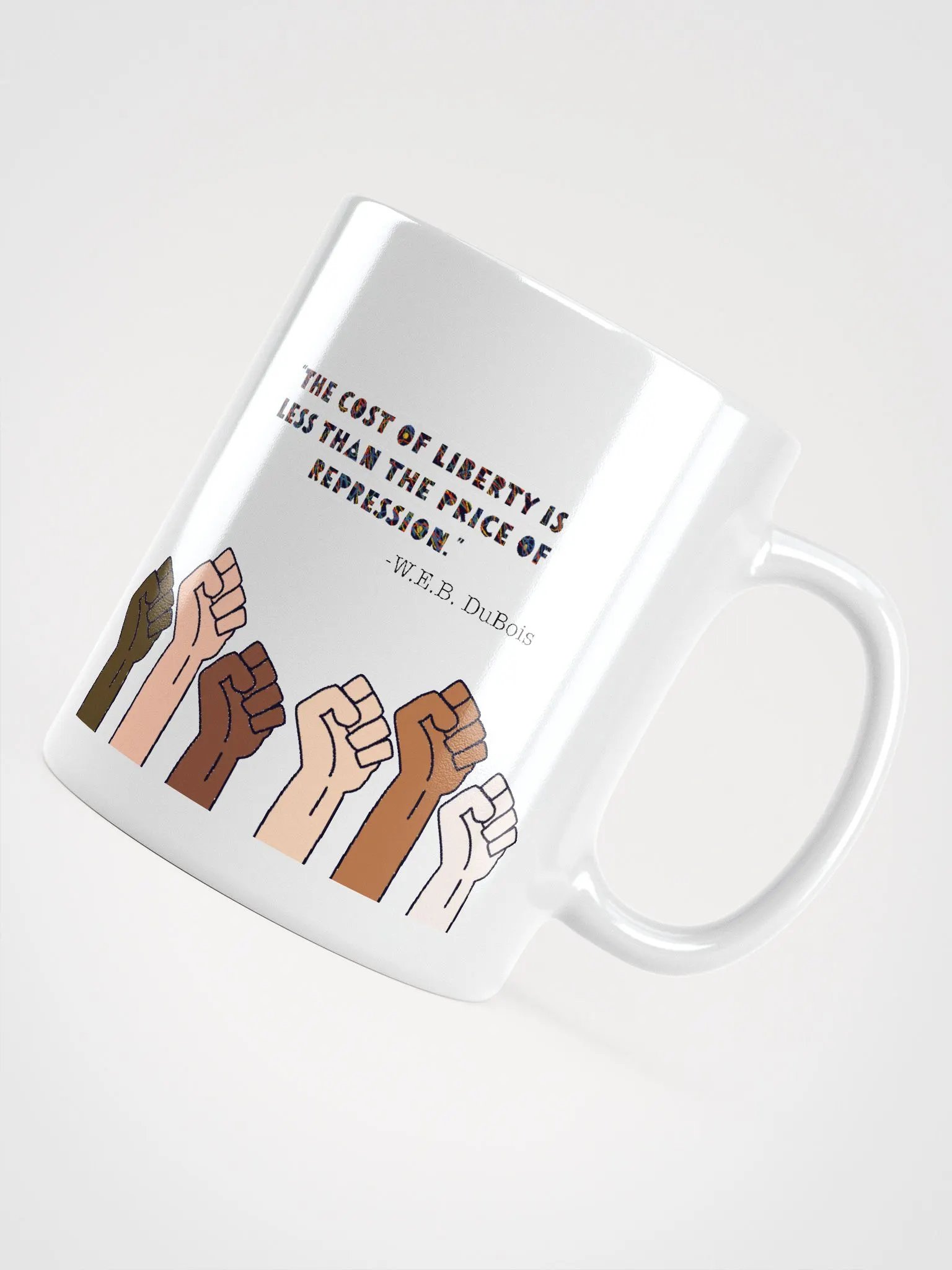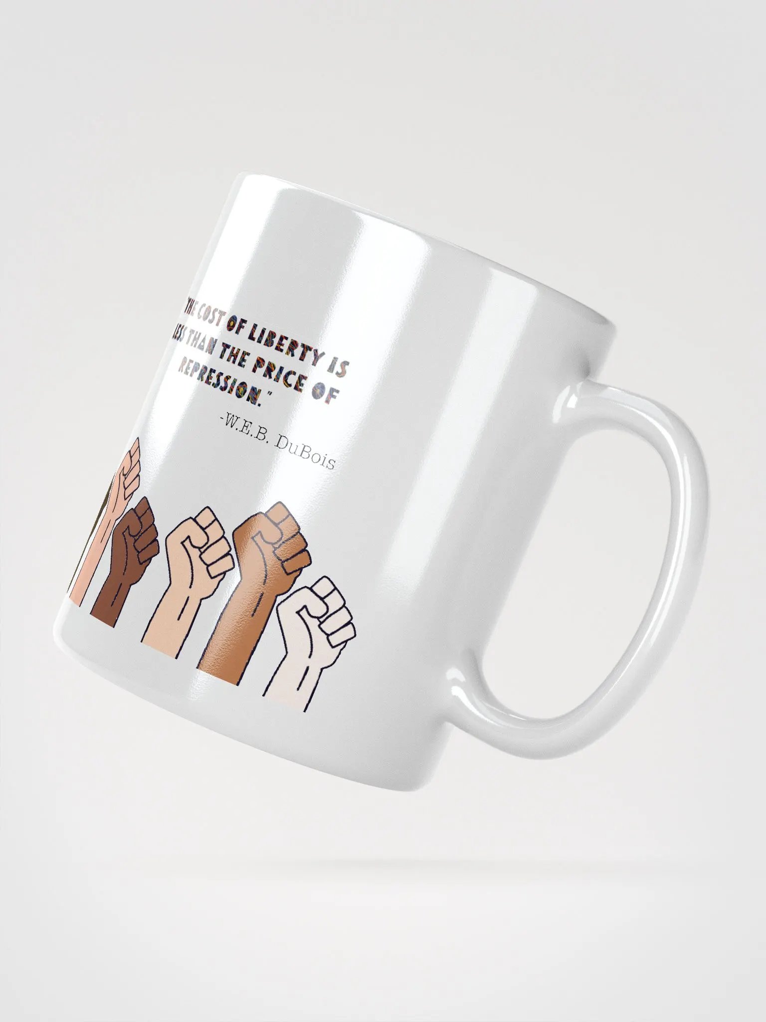 Sip in solidarity with our Unity & Liberty Mug. Featuring a powerful design of raised fists symbolizing strength and diversity, paired with a quote about the value of freedom. This heat-resistant ceramic mug is dishwasher and microwave safe, available in 11 oz and 15 oz sizes.